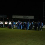 The Indian cricket team were just about to make their way out of the ground when they were informed of the ongoing security alert and were instructed to gather together on the outfield of the ground with police watching on.
