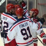 The Raiders retained an interest in the tie though, when they replied on the powerplay soon after to cut their deficit to one. With Fowler seated for hooking, AJ Smith stabbed home on the rebound from close left after following up Matt Turner’s drive from the out on the wing – the former Dynamo beating Andy Moffat to make it 4-3.