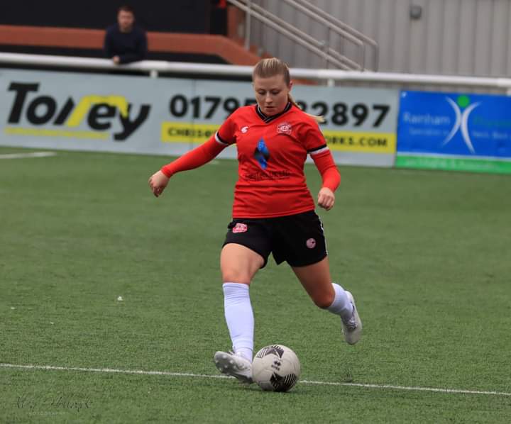 One new face in the Chatham Town Womens team since the summer is full back Lucy Jones who crossed the Thames in a bid to help Keith Boanas’ side attempt to reclaim the National League South place they lost last season.