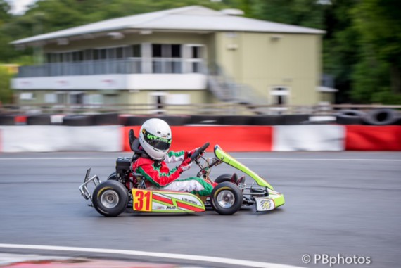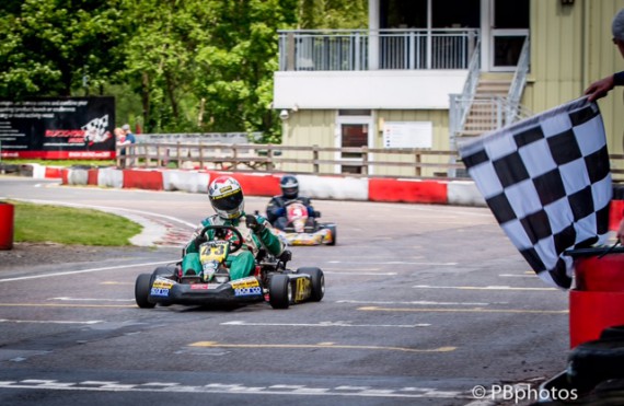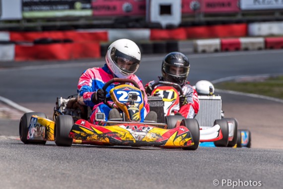 With a little hindsight I’m sure that both will regret their moves and will learn from the two hairpin clashes, but their races were lost and Dave Ankers guided his kart past them dragging along Anthony Wyatt who had been watching it all unfold in front of him.