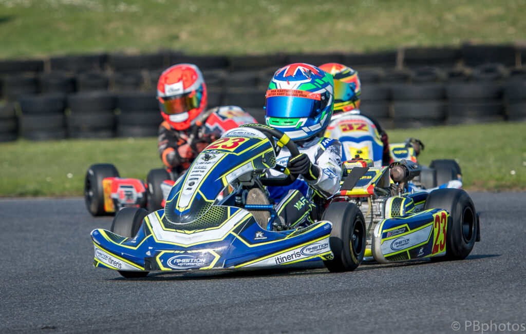 Fox now 3rd in his Clarke kart couldn’t hold onto the position for long as the Project One kart of Wall surged ahead on lap 3. Ruberto was the next to try and pass Fox, which proved to be a difficult task for the young Ambition driver, as the two drivers swapped places over consecutive laps until Ruberto made the move stick. So at the finish we had Gange 1st, Bearman 2nd, Wall 3rd, Ruberto just off the podium in 4th, Osbourne managed to pass Fox for 5th at the end of the race. Jack Cope finished 7th behind Fox in 6th, Alfie Clark, Ronnie Smart and Riley Taylor completed the top 10, with Gange taking the fastest lap.