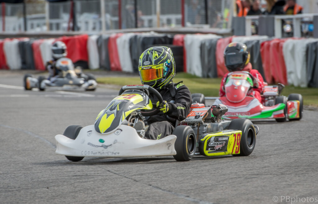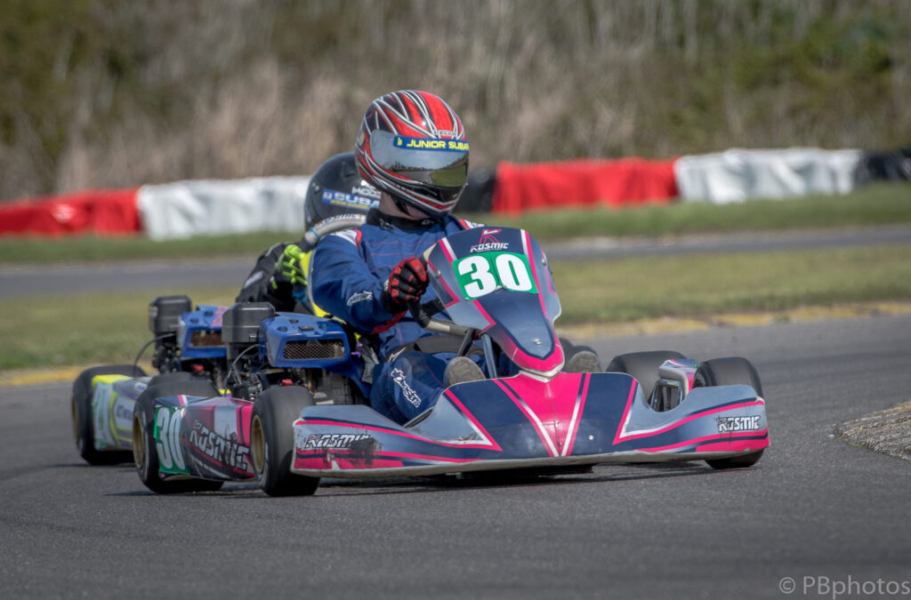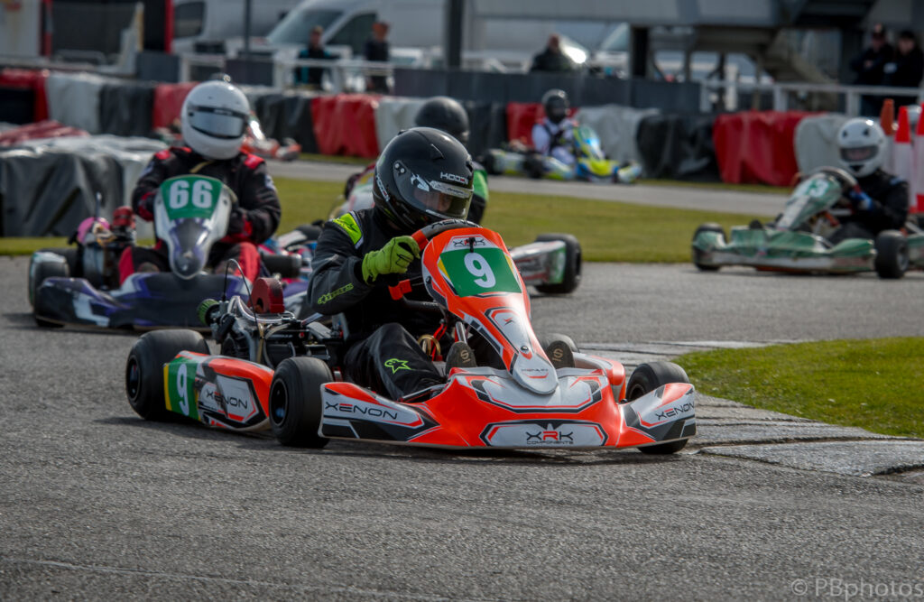 The Junior Rotax class provided some outstanding racing on Sunday, although a contentious moment in the Final dampened the result somewhat. The Pre final was won by Roalf racing’s Freddie Ingram after Freddie Lloyd and Finley Watson tripped over each other on the last lap. Finishing 2nd in the Pre final and therefore lining up alongside Ingram was KRM’s Ryan Micallef. Simon Parfett and Watson were on the 2nd row and Jacob Hobbs and Lloyd on the 3rd row of the 11 kart grid.