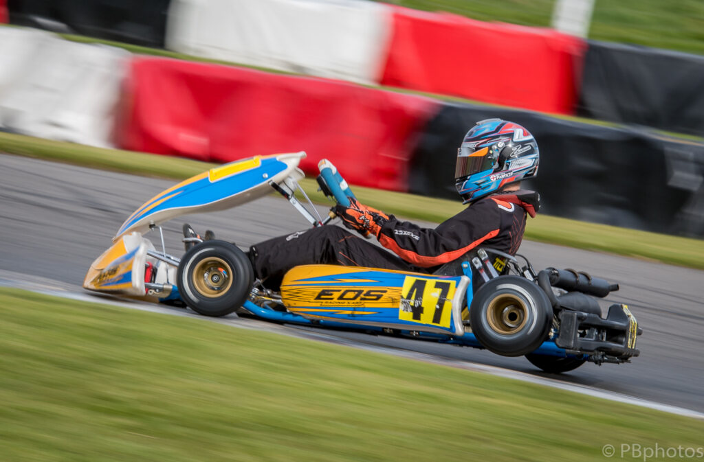 As the race approached its climax all eyes were on the two out in front as Ives was pressuring Tomsett for the lead, with the last few laps providing some quality close kart racing at its best between the two. The win eventually went to a delighted Ives, with Tomsett in 2nd who left Lydd with an early championship point’s lead. Gethen was resolute in his efforts to hold onto the final podium position and managed to succeed in the end with 3rd. Gafoor lost out during the battle for 3rd and ended 5th on the road behind the flying Russell in 4th.