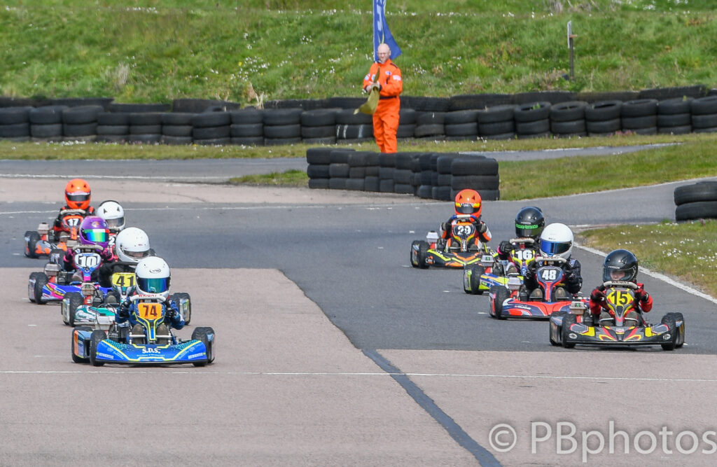 Due to the low numbers in both classes (6 in each) the Mini Max & Junior Subarus ran two separate grids in the same final. In the Mini Max class Lloyd Hare had been in top form in the morning’s heat and then the Pre final to secure wins in both, his hard work through the winter lockdown starting to pay off. Tom Ingram-Hill was making the jump up from Cadets and looked fast in his class debut starting from the front row.