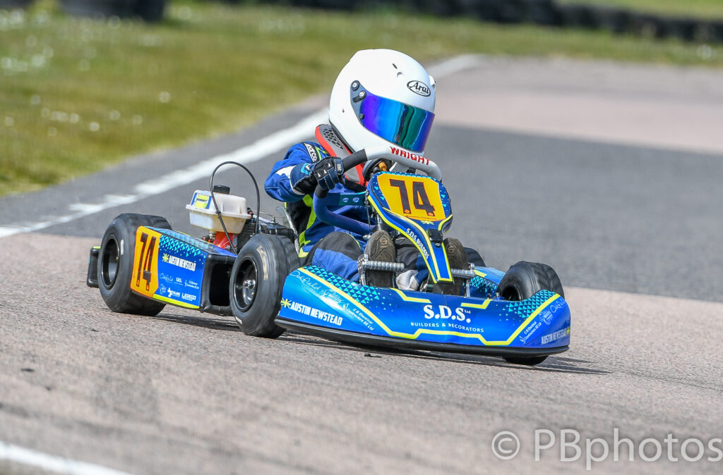 As the laps counted down Steadman’s pace was unrelenting as he went onto win by 1.18s over Stephenson in 2nd. Rice took 3rd in front of the GMS kart of Gethin who had charged up to 4th. Bartholomew who was struggling with inconsistent power still took 5th from Brookes in 6th. Pullen finished 7th, James Tomsett 8th, May had slipped to 9th finishing ahead of Kieran Ives in 10th. The fastest lap went to Stephenson on lap 5.