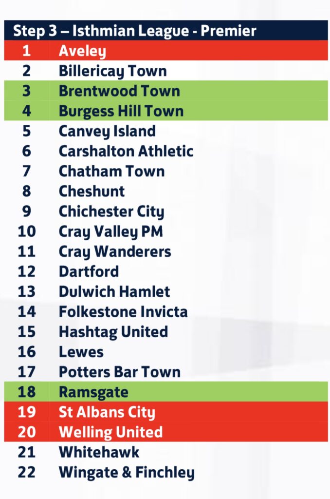 The Isthmian Premier League is now settled with Welling United dropping in from the National League South and will see lots of Kent derbies.