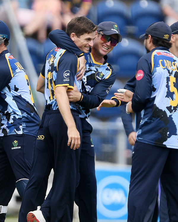 Glamorgan came out firing as Carlson so often does, leading from the front along with Will Smale. Twelve from the first over quickly had the hosts realising that this chase could be a matter of net run rate importance rather than the risk of a win-lose situation.