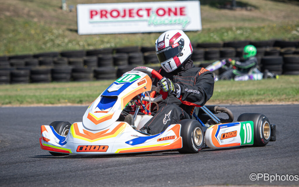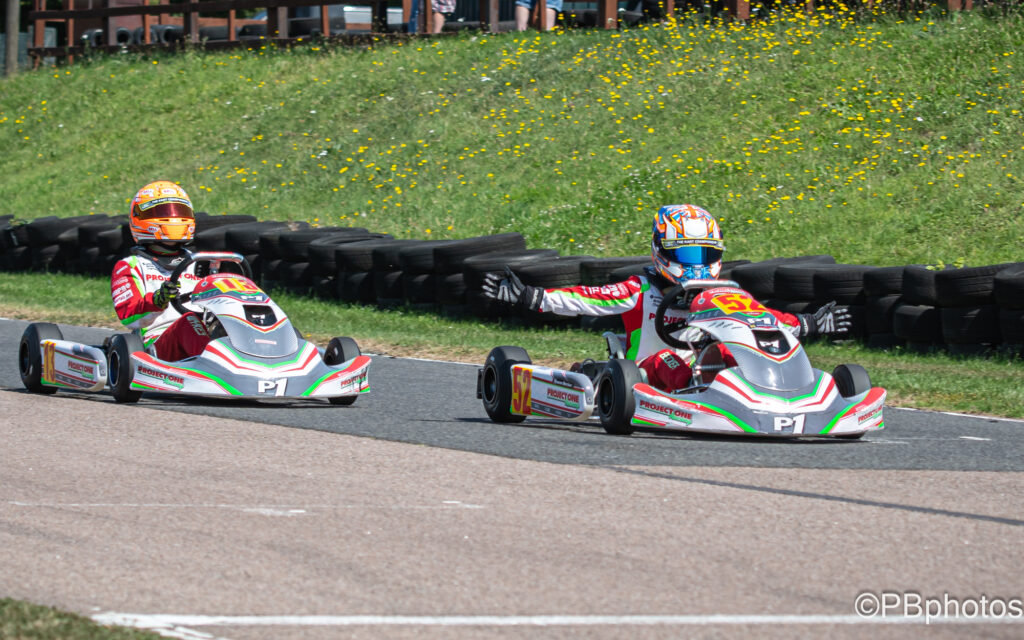 Ten drivers were entered in the Honda Cadet class and it was no surprise to see Project One drivers topping both of Saturday’s qualifying sessions, Jack Wykes in Q1 and Mason Becker the all important Q2 which gave him the pole position for Sunday’s Pre Final. Wykes took 2nd from Marcus Cooper, Jack Cope and George Pickett.