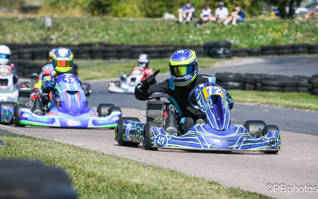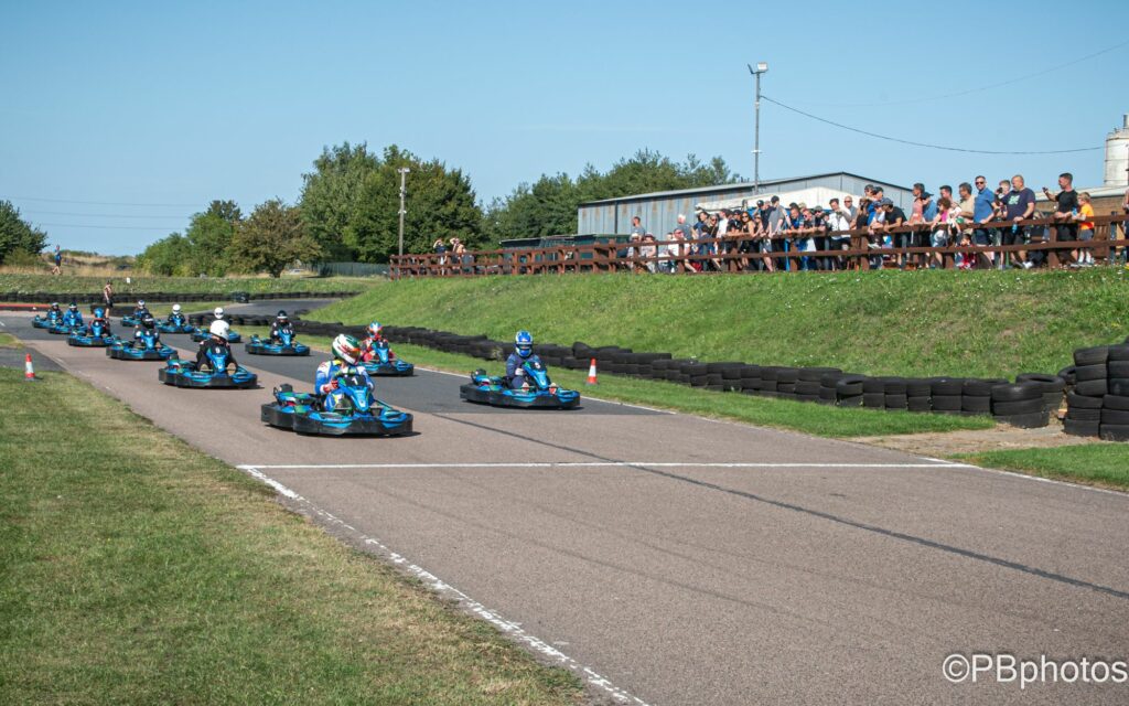The Pre Final was halted on the opening lap as a first corner crash took out several drivers, Welsh, Mamelok and Matthew Angel. At the restart Edgson made the most of his starting position to lead Pattrick over the opening lap, who had passed Mehta who now ran 3rd. May’s GMS kart made a great start to run 4th for two laps before Pullen driving for the Project One team usurped her.
