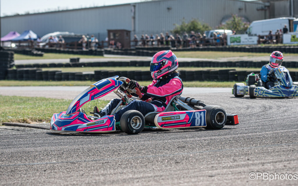 There were 13 drivers entered in the Senior Max class with 12 taking part in the two qualifying sessions, as Emma Stoner didn’t appear. The top 7 who progressed from Q1 fought it out for pole position in the Pre Final and it was Ciaron Edgson who managed to find a mere extra 0.05s to annex the top spot.