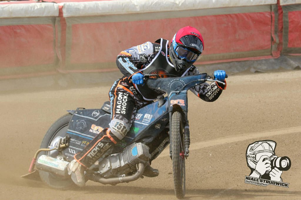 The sun shone, the crowds came and a tense, closely fought encounter unfolded with no more than two-points separating the teams throughout the fifteen heats. Fortunes ebbed and flowed throughout the contest, Kent taking an early lead, one that was overturned following a Stars 4-2 in heat seven.