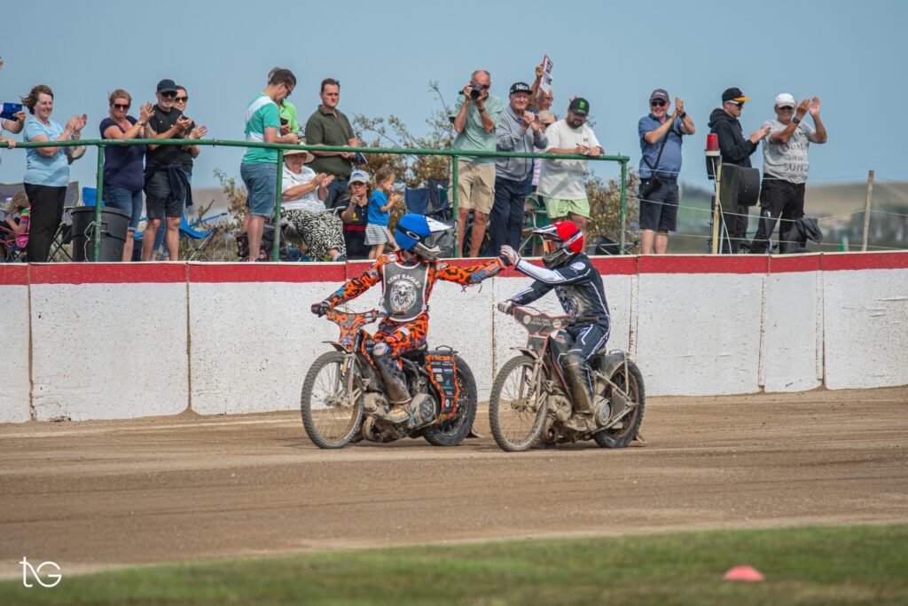 Jacob Clouting and Harris combined for maximum points in the third ahead of Joe Crewe. Sienna Summer’s had made a fast start to lead into the first bend, but his machine spluttered and died as he hit the back straight leaving the Kent pairing to propel their team into a 11-7 advantage.