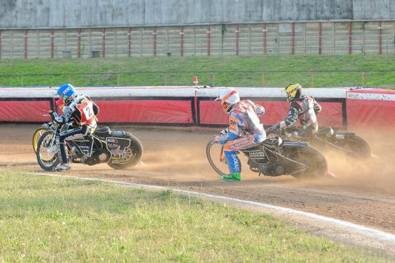 Two quickfire 5-1s for the visitors in the next two heats were literally hammer blows for the Kings – not least because left in the wake of super-fast trapping Lakeside riders were the top two for the Kings, Nathan Stoneman & Jack Thomas – the latter fairly extraordinarily a victim of Gilkes’ second win of the night.