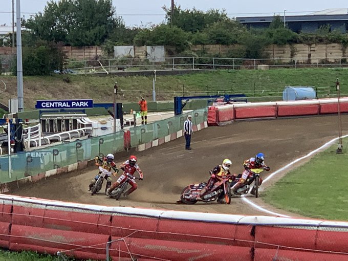 The opening salvoes saw the closely matched sides locked together – with the Brummies securing an early advantage with their German number one Erik Riss taking the scalp of his counterpart in the hosts’ side Troy Batchelor in heat one and former Kings’ rider Jack Thomas and the Italian ‘Paco’ Castagna combining in the rerun reserves race to put the Second City side two points ahead.