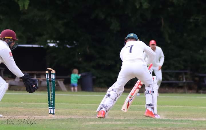 Sevenoaks were asked to field first and could do little to stop Curtis Maynard who scored 111 at fractionally under a run a ball. Henry Marrick supported him with 40 as the visitors finished on 295 for 8. Sahil Shah claimed 3 for 35.