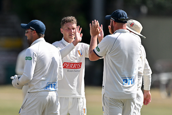 While William Harby and Leo Carter were putting on 112 for the third wicket, the hosts looked well placed. However, James Poulsom dismissed the latter for 61, and the middle order fell to him in quick succession as the league leaders assumed control.