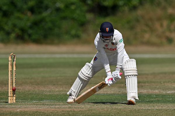 Hosting fifth placed Bromley, St Lawrence and Highland Court opted to bat first. After Dan Stickels had scored 47, Kent’s out of form Jack Leaning took centre stage with an excellent 102, supported by Oliver Curtiss with 41. Zac Philipson returned 3 for 40 and Aditya 3 for 72 as the innings closed on 287 for 8.