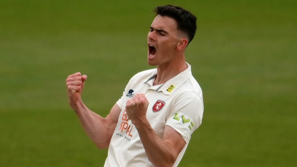 Kent’s Nathan Gilchrist said: “We’ll all very pleased after today, obviously the wicket helped us a little bit early on and then especially when there was cloud cover and the lights came on and it carried on moving around. It was a good day to be a bowler today.