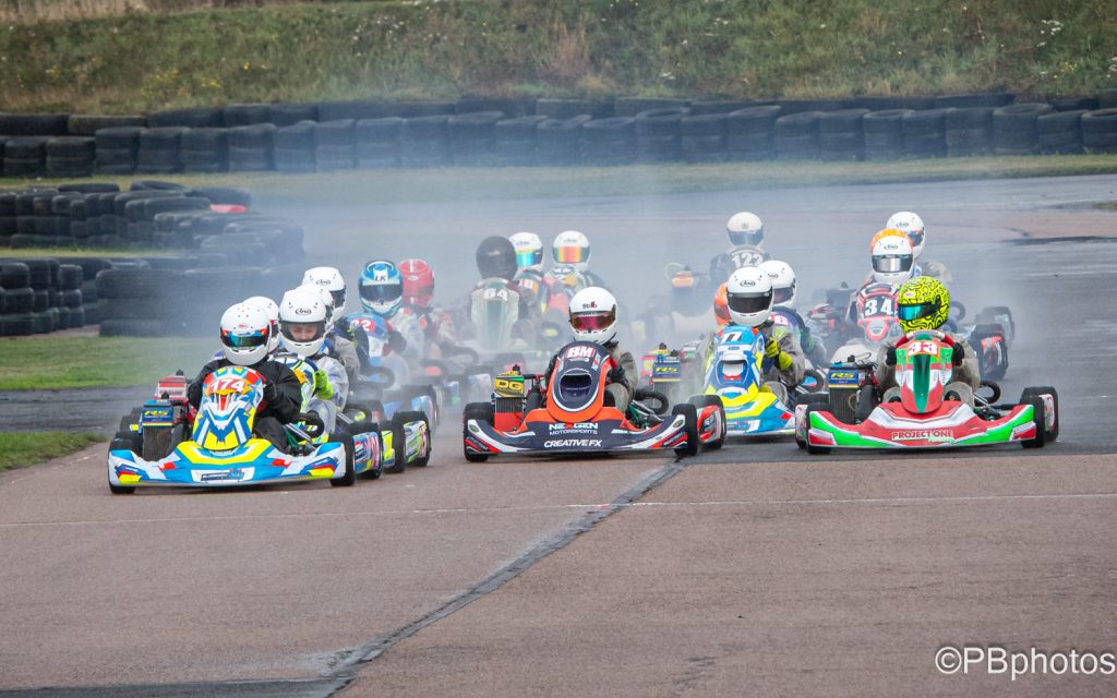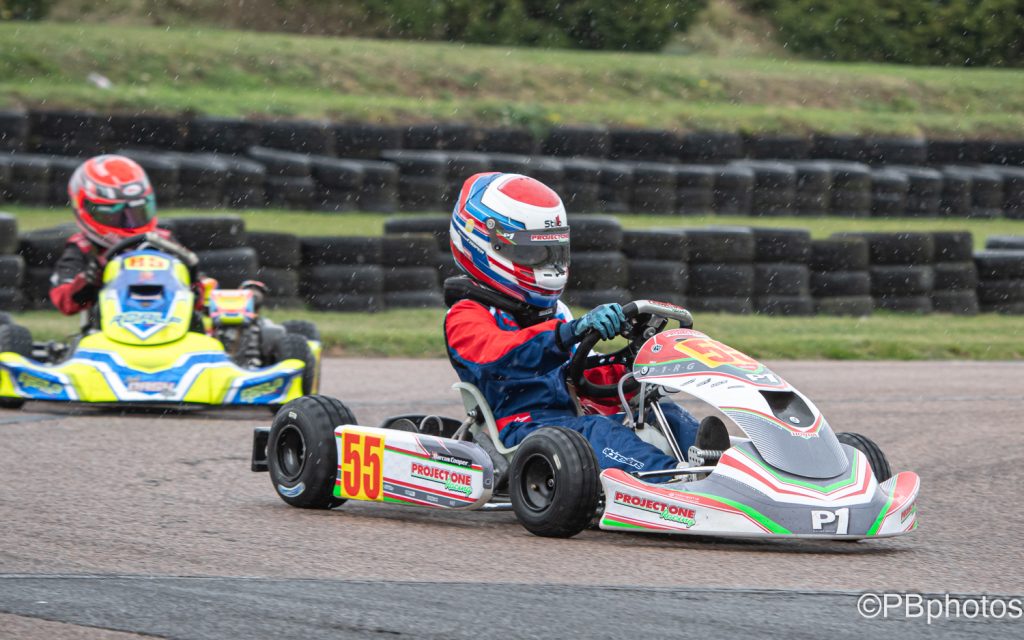 The positions at the front remained stable throughout the rest of the race as Edgson pulled clear, eventually winning by an emphatic 7.15s, securing the fastest lap too at 54.41s on lap 8 of 11. Patrick took the runner up spot, with a frustrated Pullen behind who just could not mount an attack with his Project One kart that was struggling on both turn in and bottom end power.