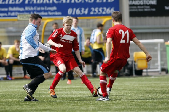 Kent FA Sunday Cup Final between Larkfield & New Hythe Wanderers (Blue)and Langley Athletic (Red).