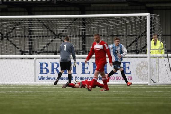 Kent FA Sunday Cup Final between Larkfield & New Hythe Wanderers (Blue)and Langley Athletic (Red).