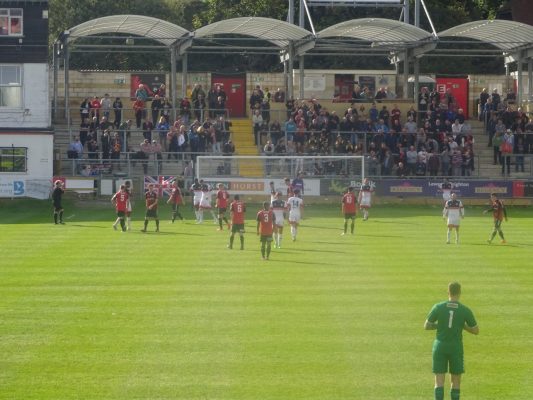 Lewes has been a bogey team for Cray in recent years and there seems to be a jinx or curse on the place as Cray led through Jay Leader’s fine header from a Karl Dent corner after 24 minutes. It seemed that the Wands had a relatively comfortable passage up to half time before in the 44th minute Bradley Stevenson was harshly sent off for raising his hands to Jamie Brotherton who had charged in with a studs up tackle but wasn’t booked.