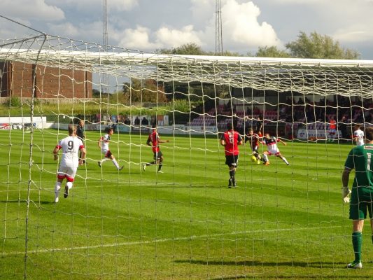 Cray were just starting to dominate possession when they took the lead in the 24th minute. From a corner down the right, Dent’s excellent cross was met firmly by Jay Leader who powered a header past Chris Winterton and into the net for his second goal of the season.