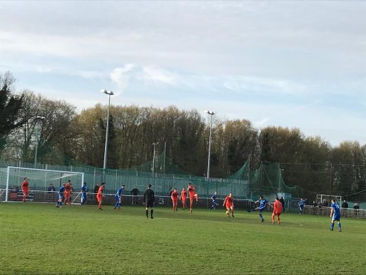 This chance then scared Chatham into a more defensive style as Lordswood started to pile the pressure on as they looked for their equalizer. A great ball in almost fell to the back post for Lordswood which would’ve been a certain goal as they had plenty of orange shirts lurking around in that area, but it was cleared out for a corner which led to even more pressure for Chatham on the 77th minute! A great corner from Ricky Gundry fell to Joe Kane whose header just went wide but the chances were not over just yet for Lordswood.