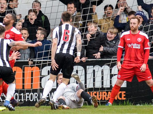 In the 21st minute, the hosts went ahead with a goal of brutal simplicity. Tarpey sent over a high corner and Inman powered a header home from close range.