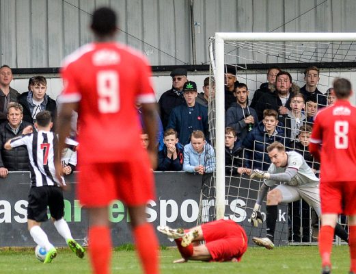 Tarpey might have increased the Magpies’ lead but Lewington made another good block then Pritchard fired high and wide.