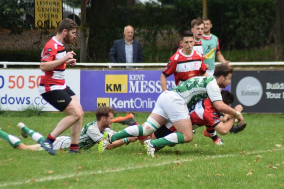The half turned early in the second quarter when with Maidstone under pressure in their own 22m, Massey was yellow carded for a cynical penalty; with the home side still deep in their own territory and a man down the pressure told when No8 Tredgett (M) was able to drive over from close range on the half hour, Johnson added the extras for a 3-12 advantage.