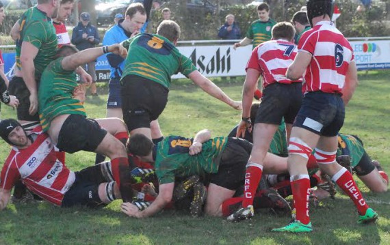 After the frustrations provided by the weather over the last two months, Maidstone, playing in their change strip of green, started as if they meant business. A penalty from the kick off was punted deep into the Crowborough 22 and, from the resultant line out, the ball was fed to Pankhurst, who got the touch down from the drive. The conversion from the 15 metre line by Van de Westerloo, ensured the seven points.