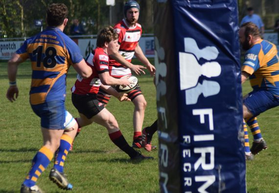 From this point it was a procession as Matt Iles, twice, Shaun Woolford, Lewis Stimpson and Lucian Morosan all added to the points total with tries of their own. The only relief for the weary visitors was a well taken try of their own, when a smart break in the centre was finished off by scrum Half, Dugan, to complete his own brace.