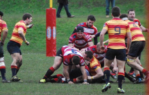 As soon as Maidstone realised that their physical superiority in the forwards could be used to good effect, a sensible game plan, to match that of Medway’s, emerged. On the back of this, Maidstone established good field position and began to exert their own pressure. A resultant penalty in the Medway 22, eminently kickable, or so it seemed, was spurned for a scrum. After the forwards attempted to batter their way across the line, the ball was spun left for Ollie Newton to touch down wide on the left. With Nick Childs converting, Maidstone had taken the lead and restored credibility in their own capabilities.