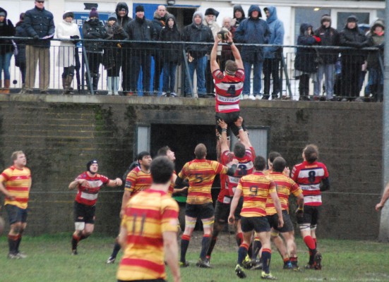 With snow flurries a constant menace, the temperature hovering just above freezing and a strong gusting wind, this was not the day for faint hearts or fancy rugby. A heavy pitch that cut up as the afternoon progressed indicated this was an afternoon for a kicking fly half and territorial supremacy, which was to the home team’s advantage. And so it proved as the game unfolded.