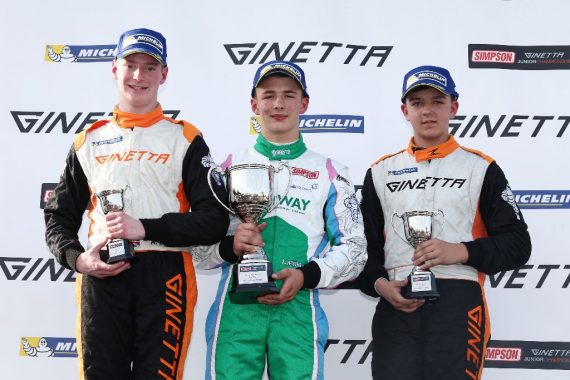 Kiern Jewiss completed another successful weekend in the Ginetta Junior Championship, finishing on the podium twice and collecting two rookie wins at Oulton Park.