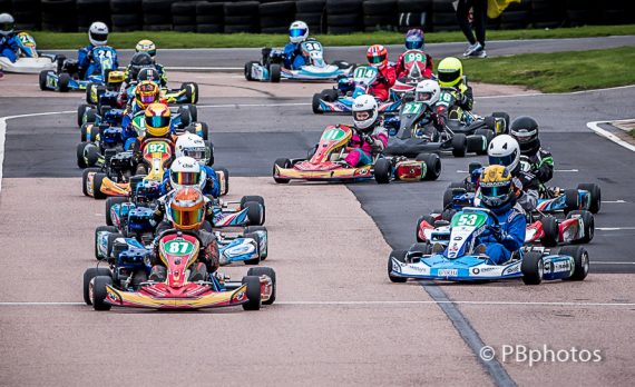After qualifying 8th in the morning and finishing 7th in the 1st Pre final, nobody would have put their money on Zach Ripley winning the 2nd Pre final, let alone the final by a huge 6.2 seconds, except perhaps for his Dad Luke, who’s enthusiasm rubs off on his son’s young shoulders. It was a fantastic performance by the Chatham lad, who looked a little overwhelmed with it all in post-race parc ferme. Watching the evolution kart disappearing up the road in front of them was Aston Millar, the morning pole man who nipped past Ronnie Mansfield early on, before settling into a comfortable runner up slot. Mansfield slipped to 4th until a late race surge saw him pass the impressive James Higgins on the last lap to snatch the final podium spot. Higgins was still happy with 4th a little way clear of an entertaining battle featuring Zach Walters 5th, Louis Horsley 6th, Matthew Hyde 7th and Joshua Hoy in 8th. It came as no surprise to hear that victor Ripley took the fastest lap, such was his dominance.