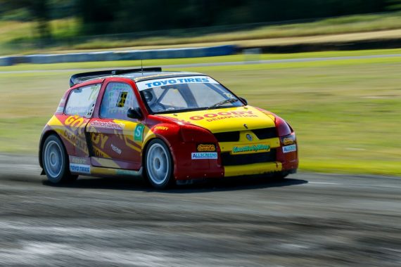 The new track was run in reverse direction on the Saturday for round 4 and features a WRX style straight in start line, which would suit the power of Ovenden’s iconic Clio V6. A fuelling issue saw the Goody Demolition backed driver left on the start line for Q1, the team worked hard to fix the problem and got the car ready for Q2 only for the same thing to happen yet again.