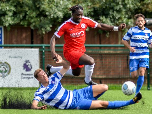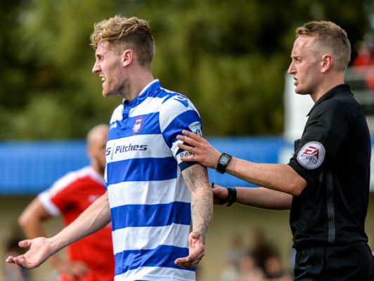 Monakana then put over a cross that was blocked by a defender’s raised arm for the most blatant of penalty calls but somehow, both referee James Bell, and his assistant, failed to spot the offence much to the shock of Welling players and supporters alike.