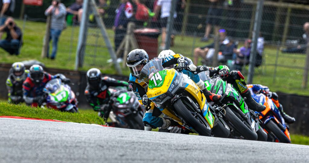 A poor tyre choice decision, for race one on Sunday morning, saw Finn initially make up places and settle into fourth position, falling back to fifth then being swamped in the penultimate lap by the other riders who’d chosen dry tyres, falling back to 13th by the chequered flag and losing his championship lead as a result.