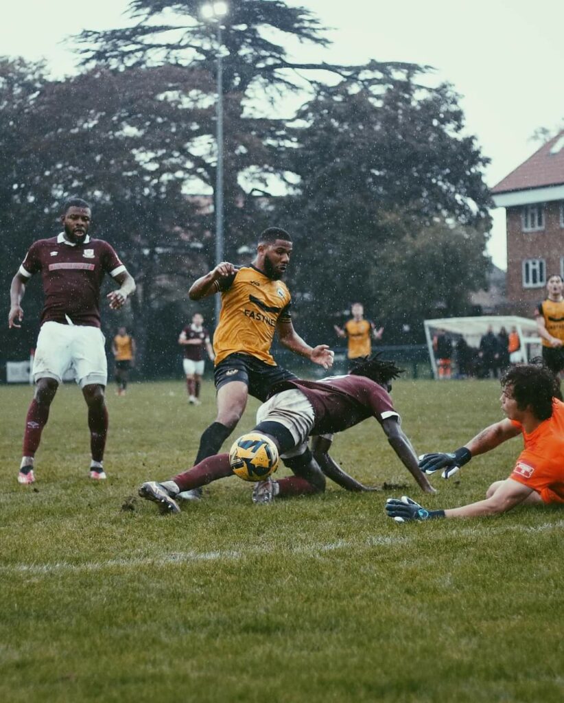 Both teams sought out a winner in the last ten minutes but Cray came closest when Brown was found by Rowley’s ball and inside the area looked certain to score but for a fine block from Valckx Fernandes.