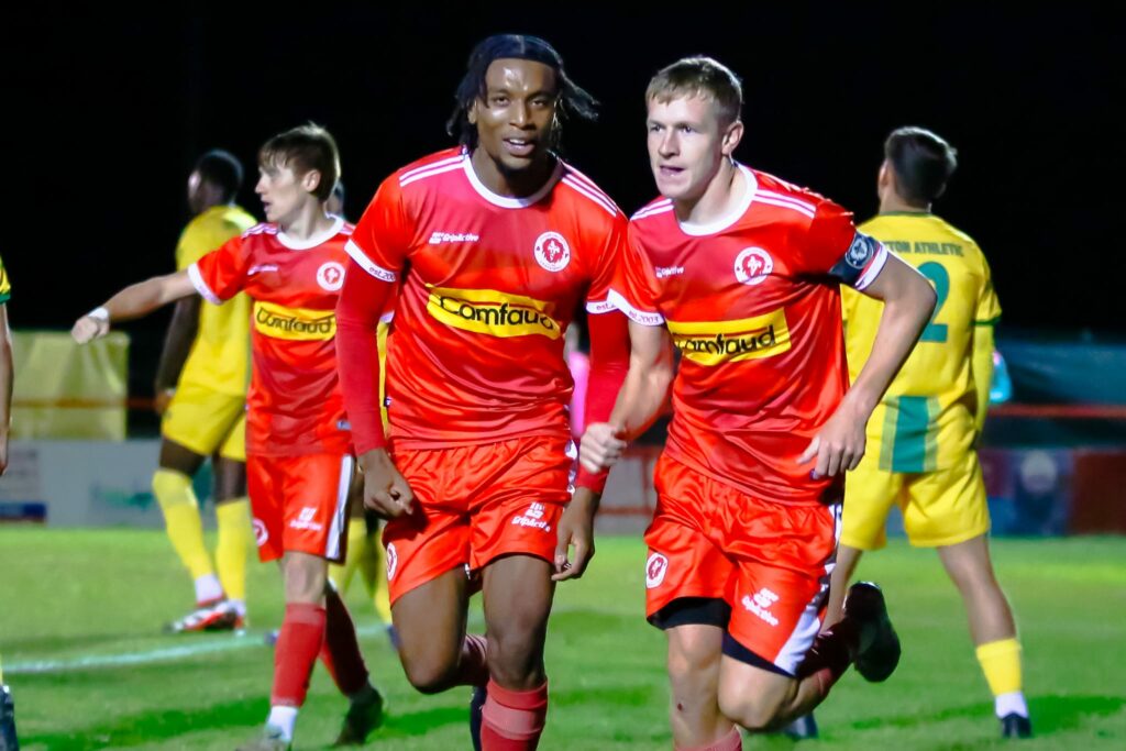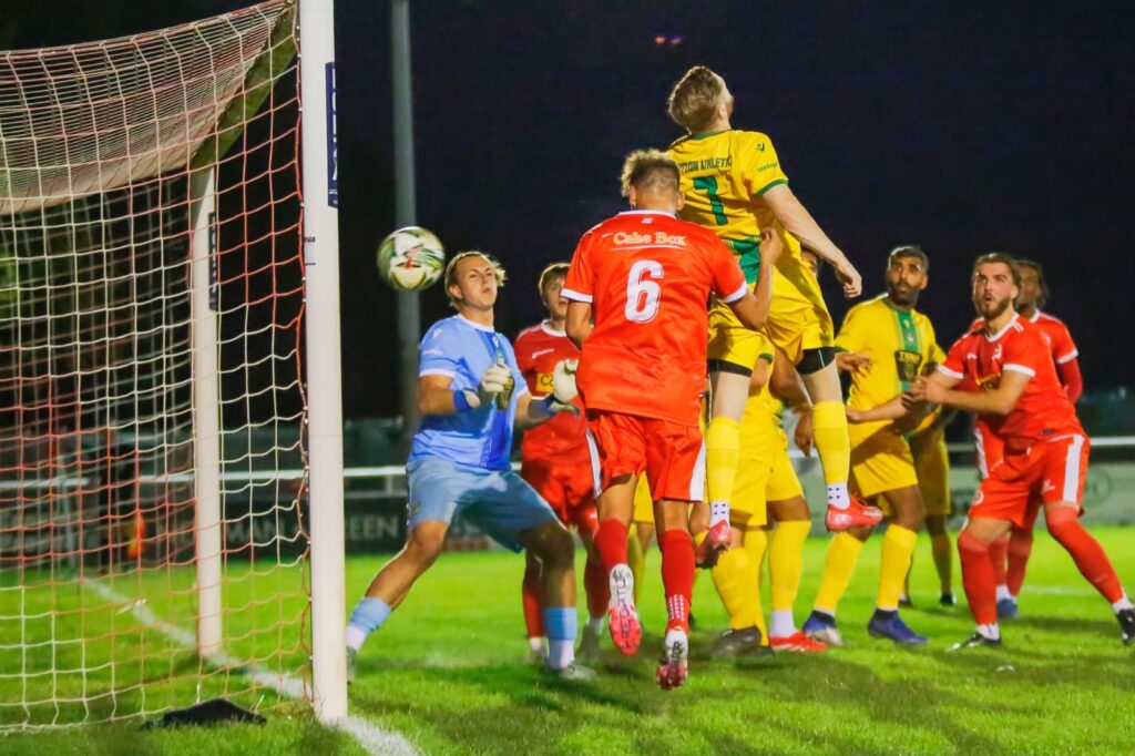 George Monger’s free kicks caused problems from the start and Wayne Bushell got on the end of one to draw a great save out of Jack Glassborrow. Although Jack Hopkins followed up, his effort was blocked. Zak Bryon then fired over as the hosts continued to press.