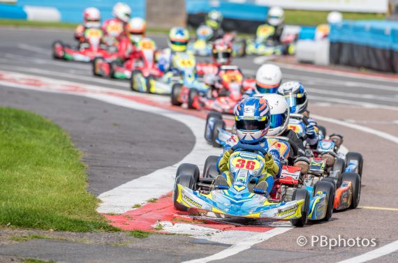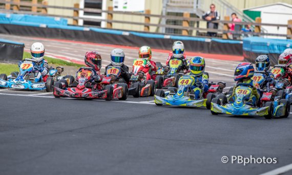 Novice George Oxford (Ambition motorsport) inherited 3rd, Jack Theobald 4th, Ticehurst just pipped Hitter to 5th after a close race long dice. Zack Byrne completed the Clubman runners in 7th. Jack Matthews took the fastest lap before his demise. In the IAME class CJ Morgan picked a nose fairing penalty which dropped him to the tail of the three class entry in the Pre Final, but then drove impeccably to take the main final win over Jakub Jakoniuk and Jakob Baldry. Clerk of the Course Martin Bean later commended young CJ Morgan over his awareness when amongst the Clubman leaders, which is often difficult to achieve in a mixed class races.