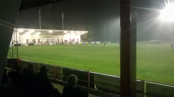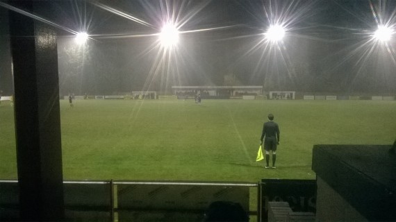 The game settled down as the weather worsened, making viewing the opposite side of the pitch difficult as puddles began to appear at the open end of the ground and the centre circle.