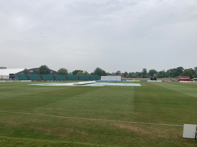 Light rain began to fall and the players went off after 29 minutes, Kent having moved to 108 without further loss. Lunch was taken early and although play resumed at 1.35pm, by then it was already raining again.