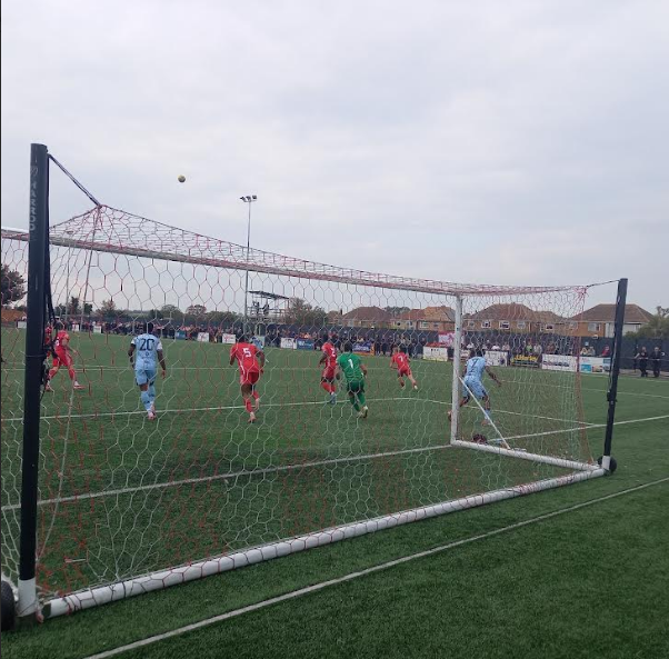 Ten minutes into the second half Ramsgate again came close this time from a centrally placed free kick and Paxman’s shot cannoned off the top of the crossbar possibly by a fingertip of Seaden and back out into play.