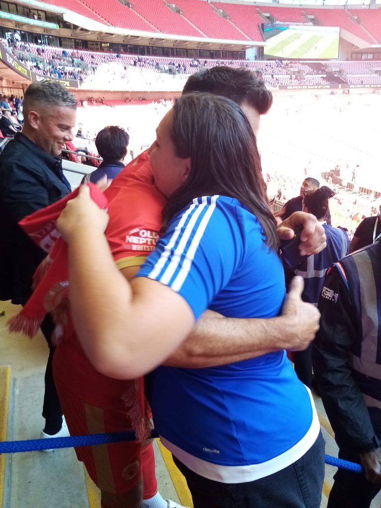 And to see Jamie Coyle walk down those steps at Wembley with a winner’s medal round his net, stopping to hug my daughter who OFF THE RECORD I think is Coylie’s number one fan, will live with me forever and be right up there with Roly Graham’s winning goal for Tommy Sampson’s Deal all those years ago! So, my moment of 2025 is Whitstable Town winning the ISUZU FA Vase.