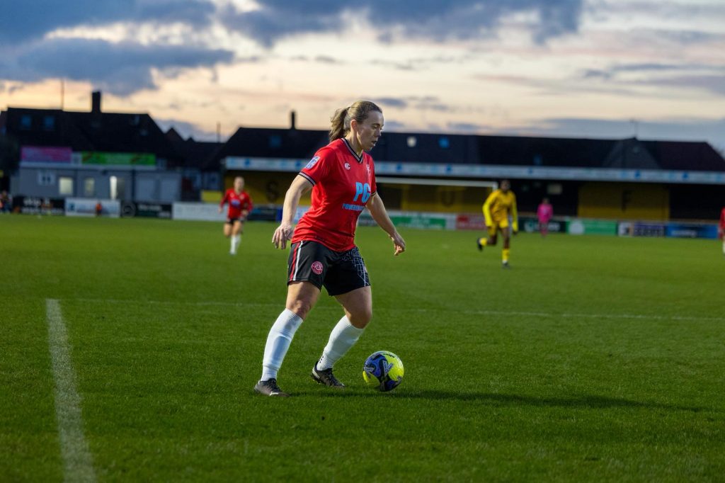 Russ signed for the Chats from Dartford in the summer and has become an integral part of Keith Boanas’s squad as Chatham have gone further in the competition than they, or their Gillingham Women predecessors ever have, scoring in the 3-3 draw at AFC Wimbledon in Round One and then adding the third in the 3-0 win at Sutton United in the previous round.