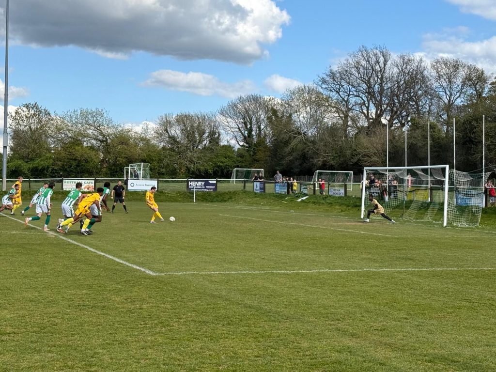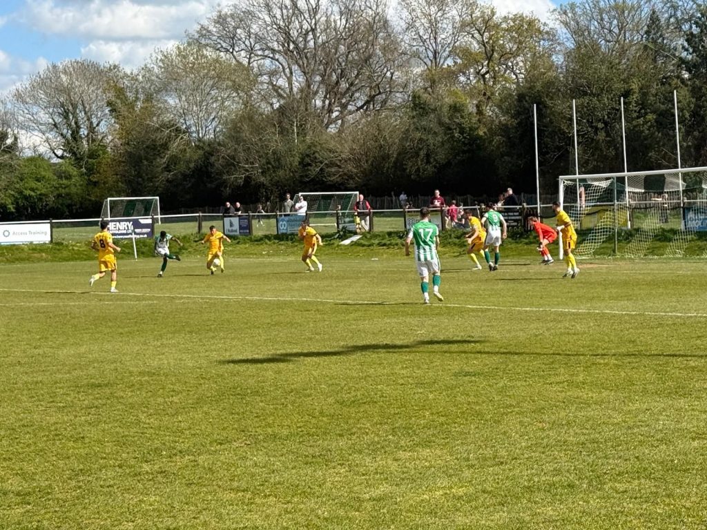 It was Rusthall who had the dream start. Kicking up the slope, an excellent through ball from Louie Clarke, put Jack Kirby through on goal. His shot from just inside the penally area went across Lucas Brookman in the Bears goal and into the corner of the net for a second minute lead. This settled the home side, and they quickly doubled their lead in the 13th minute. A good run and shot by Reuel Powell-Downey was saved by Brookman for a corner. From the resulting set piece, Charlie Clover buried a header into the net from close range for a deserved second.
