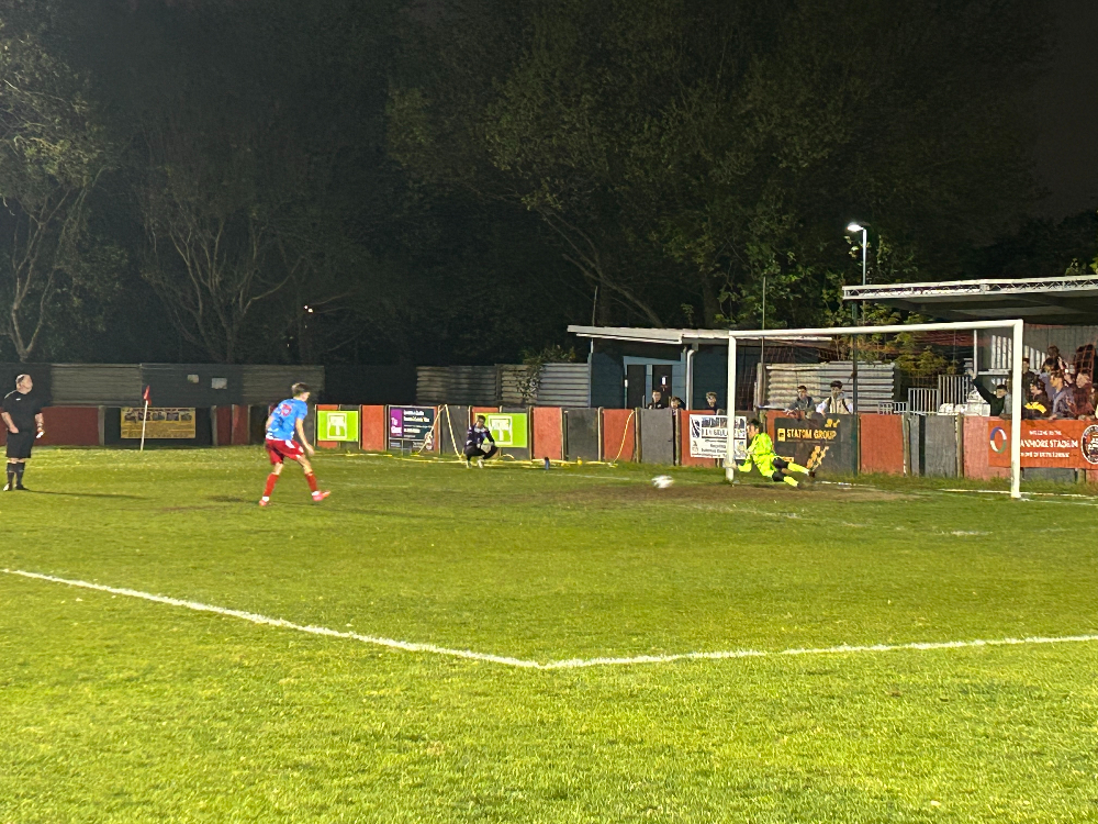 End to end football continued in the latter stages and the hosts had a great chance to win it in stoppage time. Nyako sent Church through and he was brought down in the penalty area. Peel-Evans took the responsibility but Cleary guessed correctly and pushed it onto the woodwork and out.